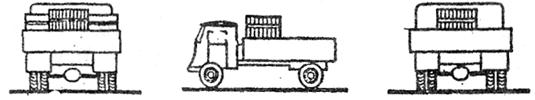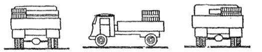 Рис. 15. Размещение грузов на автомобилях: а – правильное размещение малогабаритных тяжелых грузов; б – неправильное размещение малогабаритных тяжелых грузов; в – правильное размещение длинномерных грузов; г – неправильное размещение длинномерных грузов.