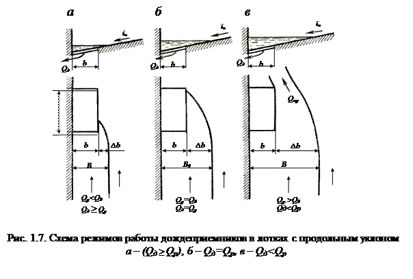 Qр. В этом случае весь идущий по лотку расход Qр поступает в дождеприемник (рис. 1.7, а).