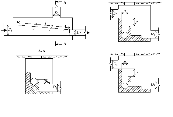 Разделительные камеры, устраиваемые на дождевой сети полураздельной системы водоотведения, аналогичны по конструкции ливнеспускам, которые имеются в общесплавной системе. Поэтому их иногда объединяют под общим названием – ливнесбросные камеры. По принципу работы разделительные камеры можно подразделить на следующие основные типы (см. рис.1.16):
