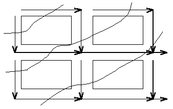 Уличные дождевые коллекторы в зависимости от рельефа местности трассируют по объемлющей схеме, при которой сеть трассируют по проездам, опоясывающим квартал со всех сторон (рис. 1.24), или по пониженной грани – сеть прокладывают только по наиболее низким граням кварталов (рис. 1.25).