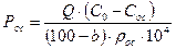 Количество осадка Рос (м/ч), выделяемого в отстойных сооружениях, следует определять исходя из концентрации взвешенных веществ (мг/л) в поступающем стоке Со и в отстойном стоке Сос.