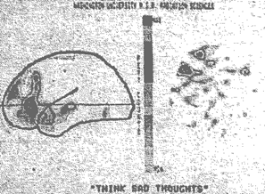Грусть и мозг. Позитронная эмиссионнная томограмма (PET scan) человека с грустными мыслями показывает, какие области активности мозга соответствуют подобным изменениям настроения.
