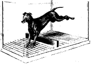 Рисунок 6.3. Спасительный прыжок. Экспериментальные животные научаются избегать ударов, которым они подвергаются в одном отсеке ящика, перепрыгивая на другую (безопасную) сторону барьера.