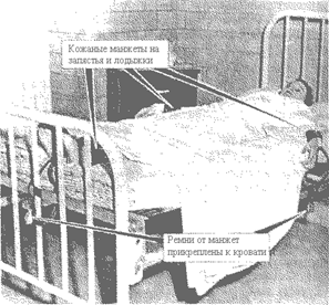 Больничное устройство, ограничивающее движения. Когда государственные больницы по всем Соединенным Штатам переполнились, в них стали все чаще прибегать к механическим устройствам для контроля за пациентами. Например, в Байберрийской (Byberry) государственной больнице в Филадельфии буйных пациентов часто привязывали к кроватям. Эта процедура использовалась вплоть до 1950-х годов.