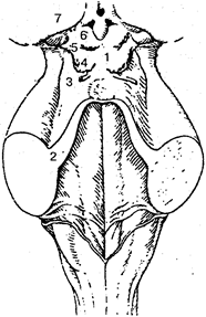 Рис. 106. Основание головного мозга: