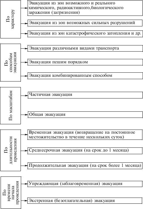 Способы и сроки проведения эвакуации определяют в зависимости от масштабов чрезвычайной ситуации, численности оставшегося в опасной зоне населения, наличия транспорта и других местных условий. В безопасных районах эвакуированное население находится до особого распоряжения.