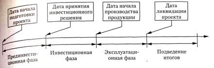 Суммарная продолжительность прединвестиционной, инвестиционной и эксплуатационной фаз цикла составляет срок жизни проекта.