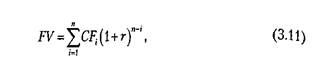 Второй подход. Можно для достижения сопоставимости доходов и вложений воспользоваться приведением всех денежных средств к концу рассматриваемого периода времени (применить операцию наращения). В этом случае будущая сумма денежного потока находится по формуле
