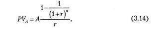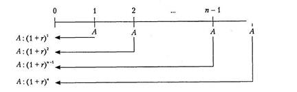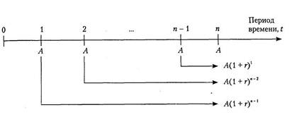 Схема расчета текущей стоимости аннуитета, основанного на потоках постнумерандо, показана на рис. 3.8.