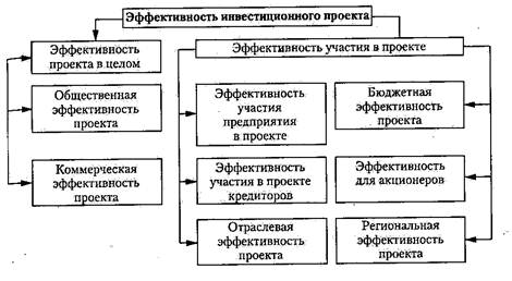 Поскольку каждый из субъектов, участвующих в осуществлении инвестиционного проекта, ожидает получить свой эффект от его реализации и несет для этого вполне определенные затраты, возникает необходимость оценки эффективности участия в проекте каждого из субъектов инвестиционной деятельности (см. рис). Эффективность участия в проекте определяется с целью проверки заинтересованности в реализации проекта каждого из его участников.