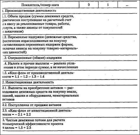Схема расчета чистых денежных потоков для оценки бюджетной эффективности проекта представлена в табл.