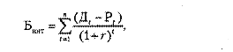 Интегральный бюджетный эффект от проекта рассчитывается как сумма дисконтированных годовых бюджетных эффектов или как превышение интегральных доходов бюджета над интегральными бюджетными расходами:
