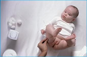 Оснащение: вода (температура 360), пеленки, стерильное растительное масло, резиновые перчатки.