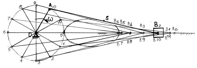 Построение планов механизма имеет целью определение относительных расположений звеньев и траекторий движения их точек по заданным положениям ведущих звеньев. Решение этой задачи производится при помощи метода засечек.