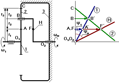Выберем на выходном звене (на водиле) точку F так, чтобы O1A=O2F (O1 и O2 соосны).