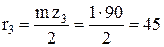 После подбора чисел зубьев определяют радиусы делительных окружностей колес: