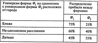 Например, если универсам фирмы Ф 1 расположен к городу Г 1ближе универсама фирмы Ф 2, то прибыль от покупок, сделанных жителями данного города, распределится следующим образом: 75% получит Ф 1, остальное — Ф 2.