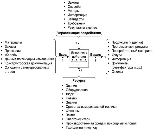 Каждый процесс имеет вход, выход, должен обеспечиваться необходимыми ресурсами и подвергаться управляющими воздействиями (см. рисунок 2)