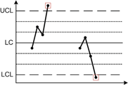 1 Одна или более точек вышли за контрольные пределы (рисунок 5).