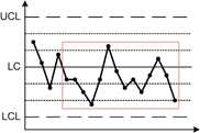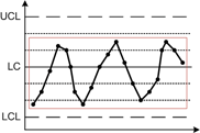 С помощью контрольной карты выясняют, находится ли значение регулируемой характеристики в пределах допуска, что позволяет узнать уровень стабильности используемой техники. Выход значения регулируемого параметра за границы допуска характеризует неустойчивый процесс. Прогнозирование изменения стабильности технологического процесса возможно до выхода значения параметра за пределы допуска по следующим признакам: