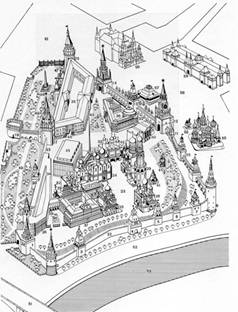 Московский Кремль это крепость общей площадью ~ 27,5 га, с общей протяженностью стен 2235 метров, 20 башнями (первоначально 18), 5 из которых проездные. На стенах крепости расположены зубцы – мерлоны для защиты стрелков. Их высота 2 – 2,5 метра, толщина 65 – 70 сантиметров. Количество зубцов – 1045 (период следования зубцов ~ 2м). Высота стен, не считая зубцов, от 5 до 19 метров (с наружной стороны).