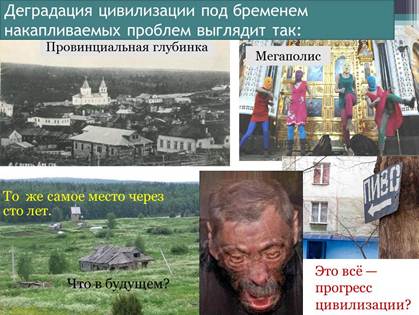 В жизни городов всё это в совокупности выражается как: сокращение рождаемости, общий рост статистики заболеваемости, и в особенности рост статистики утраты репродуктивного здоровья, включая и принадлежность к ЛГБТ-сообществу[174], рост статистики уголовных преступлений и, в особенности жестоких немотивированных убийств, рост статистики суицидов.