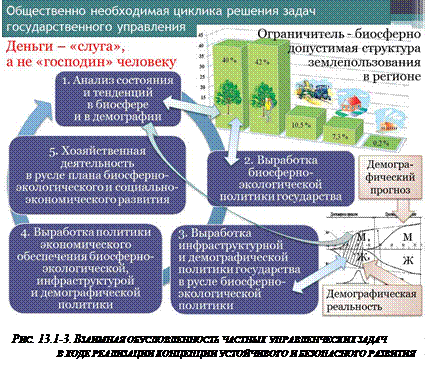 При таком подходе выясняется, что наука, обслуживающая практику буржуазного либерализма в политике, в хозяйственной и финансовой деятельности, — не интересуется объективными закономерностями, которым подчинена представленная на рисунке 13.1-2 система, составными частями которой являются биосфера, население, экономика, государственность.