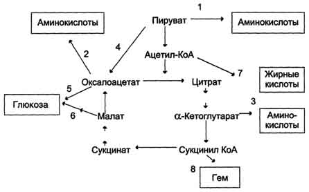 - Общий путь катаболизма, включающий превращение пирувата в ацетил-КоА и его дальнейшее окисление в цитратом цикле;