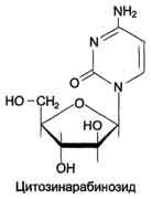 Цитозинарабинозид (или цитарабин) представляет собой соединение, в котором остаток ри-бозы замещён на стериоизомер - арабинозу. Оно используется в химиотерапии рака, в частности, при острой миелоцитарной лейкемии. В организме препарат может превращаться в дНТФ, ингибировать ДНК полимеразы и снижать скорость репликации.