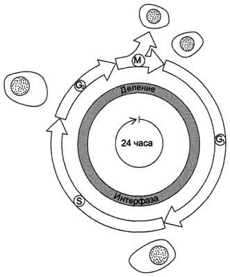 Процессы роста и деления клеток лежат в основе жизни любого организма. Но прежде чем совершить деление, клетка должна с высокой точностью копировать свой геном, синтезировать множество высоко- и низкомолекулярных соединений. Совокупность событий, обеспечивающих деление эукариотических клеток, называют " клеточный цикл". Продолжительность клеточного цикла зависит от типа делящихся клеток, у взрослого человека она может варьировать примерно от 8 ч и более, а для некоторых типов клеток до года и больше.