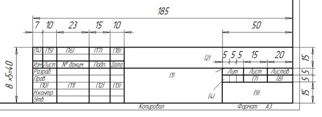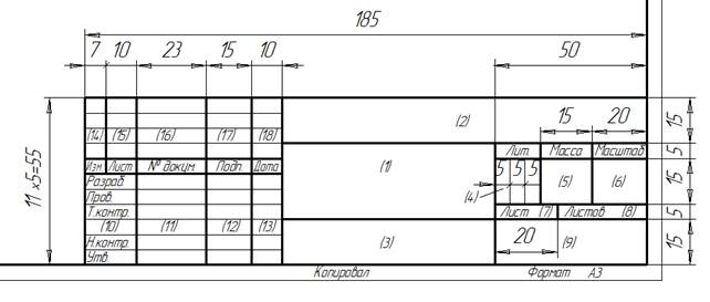 Форма, размеры и порядок заполнения основных надписей в конструкторских документах определены ГОСТ 2.104-68.