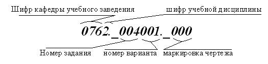 В графе 2 – обозначение документа. Эта графа заполняется на предприятиях согласно требованиям ГОСТ 2.201-80. На учебных чертежах обозначение устанавливает соответствующая кафедра. На рисунке 5 приведен пример заполнения основной надписи на кафедре «Инженерная графика» УГНТУ.