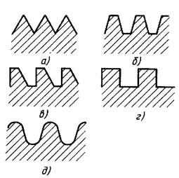 г) – прямоугольного профиля; д) – полукруглого профиля.