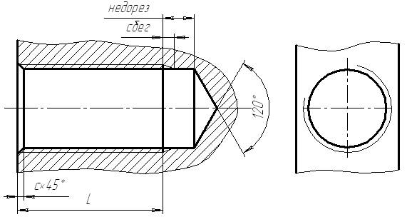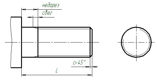 Недорез – это длина участка гладкой поверхности детали со сбегом резьбы при нарезании резьбы в упор.