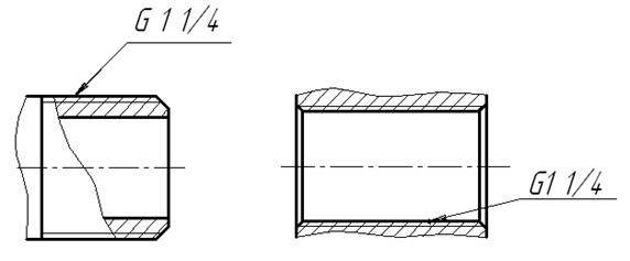 Условное обозначение резьбы, кроме трубной цилиндрической и конических, проставляется по наружному диаметру резьбы (рис. 33). Обозначение трубной цилиндрической и конических резьб указывается на полке линии-выноски (рис. 34).