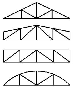 По своему очертанию фермы могут быть треугольные, полигональные, с параллельными поясами, сегментные и др. (рис. 58).