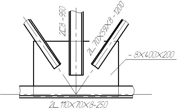 Рисунок 62 – Пример нанесения условных обозначений и размеров профилей на чертеже узла фермы.