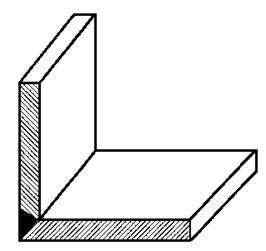 5. Знак å (равнобедренный прямоугольный треугольник) и размер катета (толщины) шва, согласно стандарта на типы и конструктивные элементы швов сварных соединений (например,î5, табл. 15). Толщина шва должна находиться в пределах от 4мм до 1,2 толщины шва соединяемых элементов или равна (толщине полки уголка). Знак выполняется сплошными тонкими линиями. Высота знака должна быть одинаковой с высотой цифр, входящих в обозначение шва.