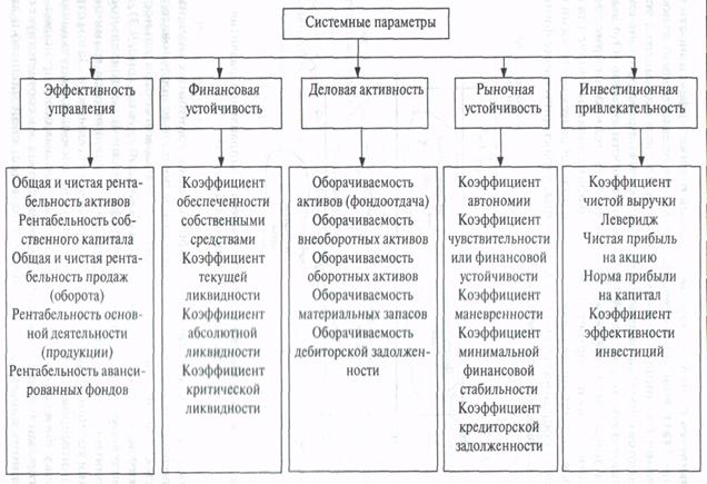 В качестве основных системных параметров управления, определяющих финансовые цели организации, рассматривают несколько групп комплексных показателей, по числовой характеристике которых дается заключение о состоянии или положении организации на определенный момент времени. К ним в первую очередь относят систему показателей, характеризующих финансовую состоятельность и гибкость организации:
