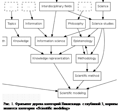 Вообще организация категорий — это достаточно сложный процесс. На рис. 23 представлен фрагмент дерева категорий с глубиной 3, где корнем является категория «Scientific modeling». Для построения рисунка использована программа Catgraph [104].