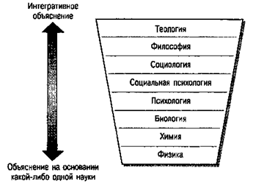 Рис. 1.1. Частичная иерархия дисциплин. Диапазон дисциплин — от базовых наук, изучающих основополагающие законы природы, до интегративных, изучающих сложные системы. Один уровень успешного объяснения функционирования человека не противоречит другим уровням объяснения