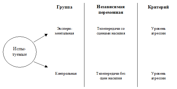 | Усиливают ли агрессивность видеоигры с элементами насилия? | Да —> Эксперимент | Компьютерные игры с элементами насилия или без них | Агрессивность |