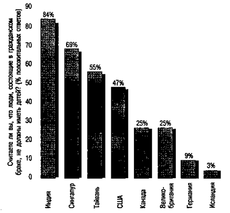 Рис. 5.1. Культурные различия. Результаты социологического опроса, проведенного Институтом Гэллапа в 1997 г. (Источник:Gallup & Lindsay, 1999)