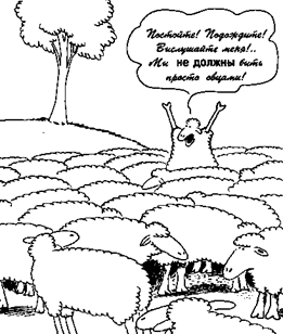 (— Постойте! Подождите! Выслушайте меня!.. Мы НЕ ДОЛЖНЫ быть просто овцами!)