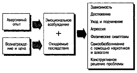 Рис. 10.4. Агрессия как результат социального научения. Эмоциональное возбуждение, порожденное аверсивным опытом, побуждает к агрессии. Но проявится ли она или наша реакция будет иной, зависит от того, каких последствий агрессивного поведения мы — благодаря своему предыдущему опыту — научились ожидать