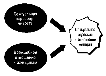 Рис. 10.8. Сексуально агрессивные мужчины. У мужчин, проявляющих сексуальную агрессию в отношении женщин, враждебное отношение к ним нередко сочетается с богатым сексуальным опытом. (Источник:Malamuth, 1996)
