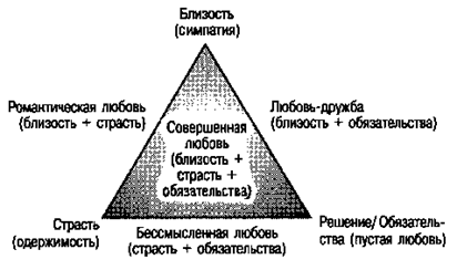 Тот же самый вопрос задала и Элизабет Барретт Браунинг [Элизабет Барретт Браунинг (1806-1861) — английская поэтесса. — Примеч. перев. ]: «Что такое моя любовь к тебе? В ней много всего. Сейчас сосчитаю». Социальные психологи насчитали много составляющих. По мнению психолога Роберта Стернберга, любовь — треугольник, тремя не равными друг другу по величине сторонами которого являются страсть, близость и верность обязательствам (рис. 11.6). Опираясь на идеи античной философии и литературы, социолог Джон Алан Ли (Lee, 1988) и психологи Клайд и Сьюзн Хендрик (Hendrick & Hendrick, 1988) идентифицировали три основных любовных стиля: ero (страсть и самораскрытие), ludus (ни к чему не обязывающая игра) и storge (дружба). Подобно тому как все известные нам цвета есть результат смешения в определенных пропорциях трех основных цветов, так и «смешение» этих основных стилей дает вторичные любовные стили. Некоторые любовные стили, и прежде всего eros и storge, — источник исключительно высокой удовлетворенности партнеров своими отношениями, чего нельзя сказать про ludus (Hendrick & Hendrick, 1997).