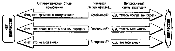 Рис. А.1. Депрессивный стиль объяснения. Депрессия связана с негативным, пессимистическим объяснением и интерпретацией неудач
