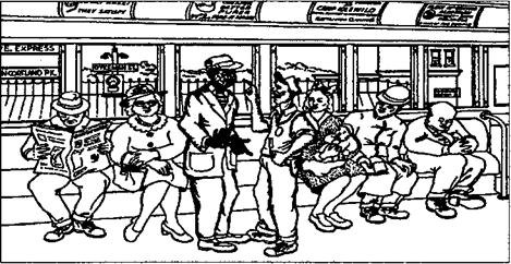 Рис. Б.1. Иногда видишь именно то, во что веришь. Ожидания, соответствующие определенной культурной традиции, влияют на восприятие, на запоминание и на показания. В 1947 г., экспериментально изучая распространение слухов, Гордон Оллпорт и Лео Постман показывали разным людям эту картинку, на которой изображен белый мужчина с лезвием бритвы в руках, и просили их рассказать об этом еще кому-то, кто должен был рассказать еще кому-то и так далее. После шести пересказов лезвие оказывалось в руке у чернокожего мужчины. (Источник:Allport G. W. & Postman L. (1947, 1975)