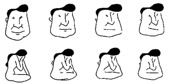 Рис. Б.2. Ожидания влияют на восприятие. Что нарисовано на правом нижнем рисунке — лицо или фигура? (Источник:Fisher, 1968)